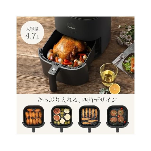 COSORI ノンフライヤー 4.7L 大容量 家庭用 電気 エアフライヤー 最高温230℃ 揚げ物 ポテト 惣菜 日本語レシピ付き タイマー 自動電源オフ グレー CAF-L501-KJP