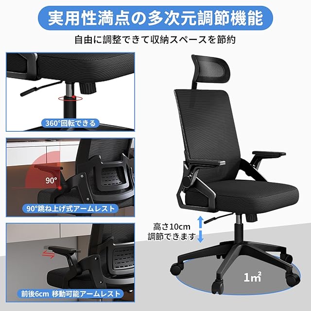 【10分間で簡単に組立可能・品質保証あり】: オフィスチェアのサイズ:幅60×奥行60×高さ107-117 cm(座面高:42-52 cm)。本体重量は10 kgで静止耐荷重は約150 KGに達しており、ご安心して利用いただけます。日本語の取り付け説明書と工具が付属しており、痩せた女性でも10分以内に簡単に取り付け可能です。安心保証:万が一商品到着後、初期不良・破損・取り付け方法が不明等の場合はお気軽にご連絡ください。輸送中に、激しい操作により製品が破損したり、汚れたりする可能性があります。そのような問題が発生した場合は、無料で交換いたしますので、お気軽にご連絡ください。