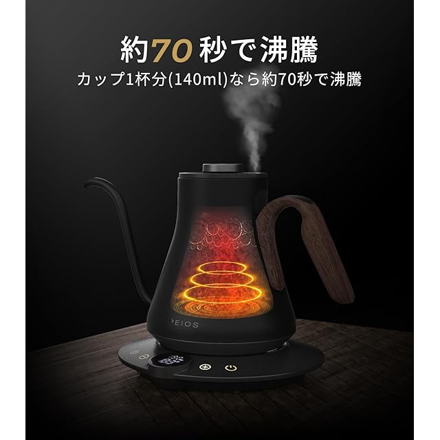 エペイオス(Epeios) 電気ケトル コーヒーケトル ケトル 電気 1°C単位の精密調節 ドリップケトル コーヒーポット 細口ドリップ LED表示パネル 電気ポット ドリップ ポット コンパクト0.9L 1040W