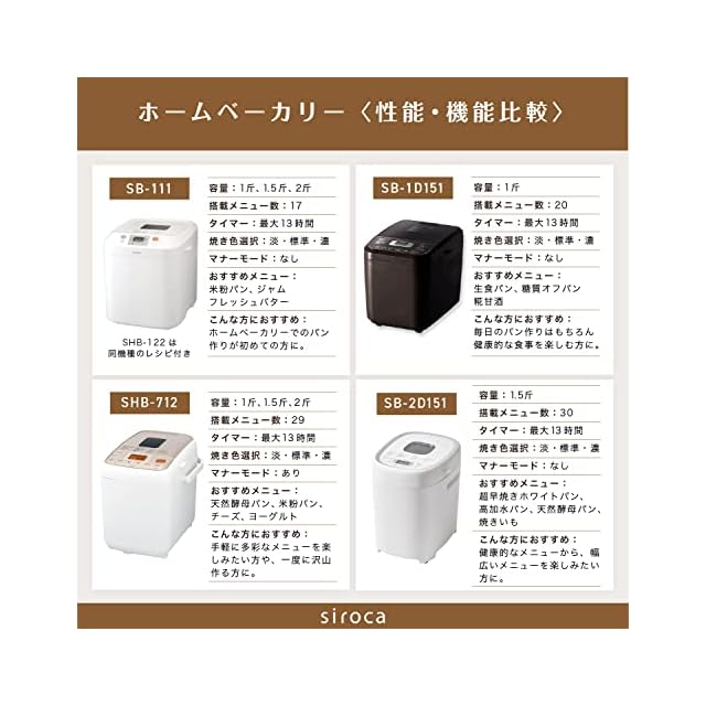 【シロカ公式ストア限定】シロカ 全自動ホームベーカリー [全自動/もちつき/1~2斤/全粒粉/ジャム/フレッシュバター/蕎麦/うどん/パスタ/タイマー] SB-111 ホワイト