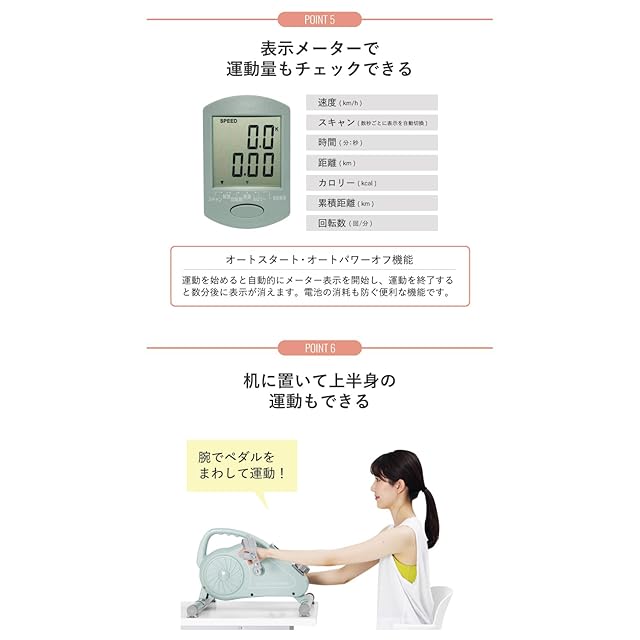 【電源不要、いつでもお好きな場所で】電源コードがいらず、どこでも使用可能です。コンパクトなので、デスクの下に置いて仕事や作業をしながらなど、時間がない方も効率よく有酸素運動できます。