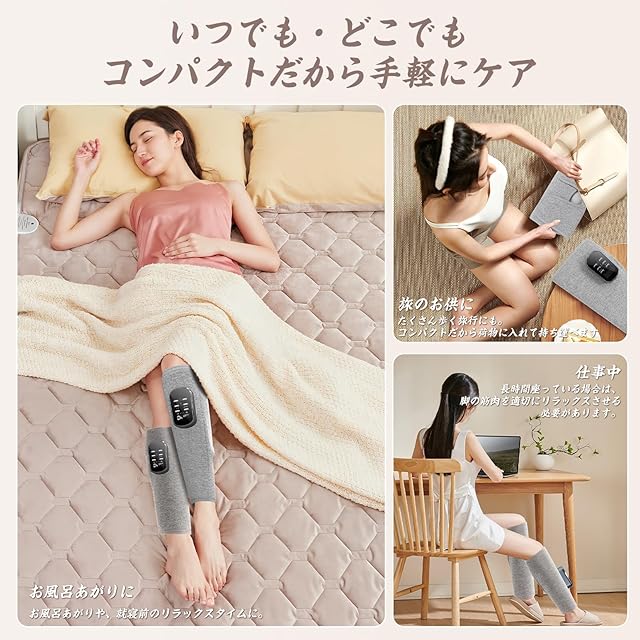 【温熱機能】温熱機能を搭載しており、低温(40°)、中温(45°)、高温(50°)の3つの温度を選択することができます。足を温めることで気持ちよくケアできるため、スッキリ感を得やすいでしょう。歩くことが少ないと、気づかないうちに足が冷えやすくなります。在宅ワークなどによって歩くことが減っている人は、本製品がおすすめです。自分のニーズに応じて温熱機能をオンオフすることができます。15分、20分、25分、30分の自動タイミングを選択できます、使いすぎの心配もなく、寝てしまっても安全の心配がありません。温度に敏感な場合は、ズボンを着用するか、温度設定を低くすることをお勧めします。
