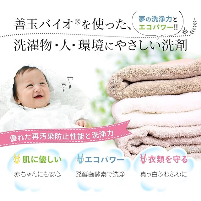 ✅【善玉バイオを配合】独自製法により「乳酸菌」「酵母菌」「納豆菌」などを発酵抽出した「善玉バイオ」を洗濯洗剤に配合。 自然の力で洗浄力をバックアップしています。