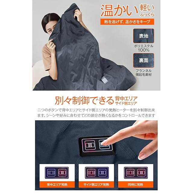 【省エネ・フランネル素材・持ち運びや保管に便利】 電気毛布 肩掛けは他の大型暖房器具に比べてエネルギー消費量が少なく、体を直接温めることに特化しているため、エネルギーの無駄を減らすことができます。電気毛布 USB給電は軽くて折りたたみやすく、持ち運びもしやすいので、家庭、オフィス、寮など様々な環境に適しています。使用しない時も、スペースを取らずに収納できます。電気毛布 防寒対策の裏面は毛質の細かいフランネルを使用し、空気を遮断することで保温効果を高めます。また、フランネルの毛並みは繊細で、肌触りがやわらかく、あたたかさと快適さをもたらしてくれます。この電気毛布 速暖は快適な生活を追求する完璧な選択です。