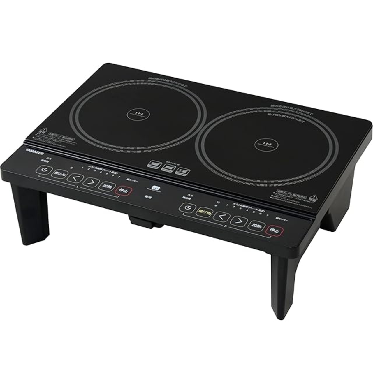 [山善] 2口 IHコンロ IHクッキングヒーター 1400W 一人暮らし 二人暮らし 脚付き IH調理器 工事不要 (幅56cmタイプ) タイマー機能 揚げ物対応 煮込みモード搭載 静音設計 ブラック YES-WL1456(B)