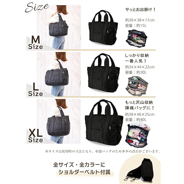 ✅✅✅✅【かばん職人のこだわり満載】三層構造・ダブルジップ・マグネットボタン・Dカン・ストライプ生地など職人が使い勝手を追求した逸品です! サイズは3サイズ展開で、Mサイズはちょっとしたお出かけにおすすめ、Lサイズは荷物が多めの方におすすめ、XLは出産入院(陣痛バッグ)や車での旅行用におすすめです。◉ Mサイズ:480g 幅:約33cm /高さ:約30cm / マチ:約17cm ◉Lサイズ:580g 幅:約44cm /高さ:約34cm / マチ:約cm ◉XLサイズ:650g 幅:約46cm /高さ:約38cm / マチ:約25cm(幅サイズは立体時のサイズになります。マチ幅は底部分だけでなく、サイドポケットの厚みを合計したサイズです。M・L・XL共にショルダーベルト付)