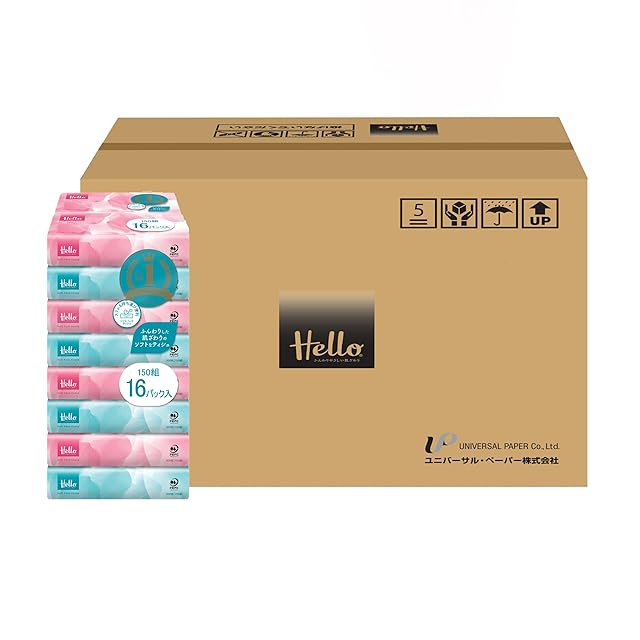 【ケース販売】ハロー ソフトパックティシュペーパー 300枚(150組) 16個 x 6パック 5215
