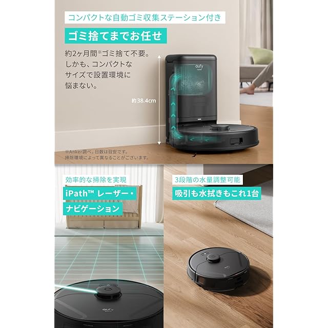 ゴミ捨てはおまかせ: 本体のゴミを自動でゴミ収集ステーションに集めるため、毎回のゴミ捨てストレスから解放されます。