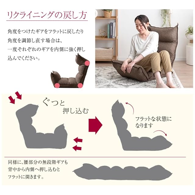 タンスのゲン 座椅子 さらっとオールシーズン快適 ダリアン生地 全面 低反発 14段階 リクライニング チェア 椅子 ダリアンブラウン 65170001(63242)