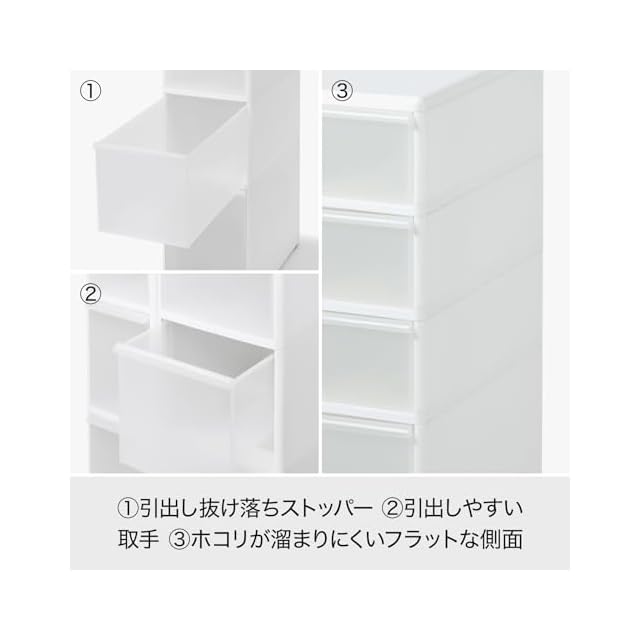 ライクイット (likeーit) ランドリー収納 すき間 引出し スーパースリム 3段 (着脱式アジャスター付) 約幅15.5×奥46.5×高82cm ホワイト 日本製 FTSー111A 洗濯機横で使える 引き出し 省スペース