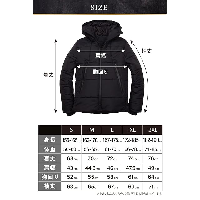 【 商品詳細 】生地・中綿共に高級ポリエステルを95%、ダウン5%使用。カラーはブラック、ネイビー、グレー、チャコールグレー。サイズはSサイズ、Mサイズ、Lサイズ、XLサイズ、XXLサイズをご用意しております。