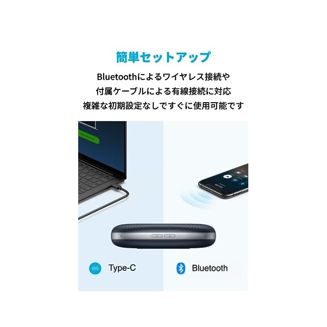 パッケージ内容:Anker PowerConf、USB-C & USB-A ケーブル、トラベルポーチ、取扱説明書、安全マニュアル 技適マーク認証済み商品(周波数帯:2402MHz~2480MHz)