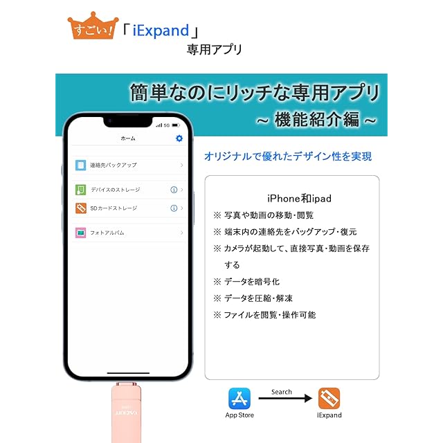 「大容量usbメモリ・幅広い交換性アイフォンusbメモリ 」128GB のiPhone USBメモリでストレージを拡張でき、iOS デバイスを容量不足から徹底的解放させます!更に、すべてのiPhoneおよびiPadシリーズと互換性があります。iPhone14/14 pro /14 Pro MaxiPhone 13 /13 Pro/13 Pro Max/13 mini/iPhone 12 /12 Pro/12 Pro Max/12 mini/ 11 /11 Pro/11 Pro Max / SE (第2/1世代) /X /XS/XS Max /XR/8 Plus/8 / 7 Plus/7 /6s Plus/6s/6 6 Plus /Pad Pro / iPod touch 6/ MacBook Air/Macbook Pro/ iMac/PC /ノートパソコンなどのデバイスに対応します。