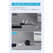 コンパクトデザイン:GaN技術により横幅10cmの小型化を実現。インテリアとしても馴染むデザインで、 様々な場所でお使いいただけます。