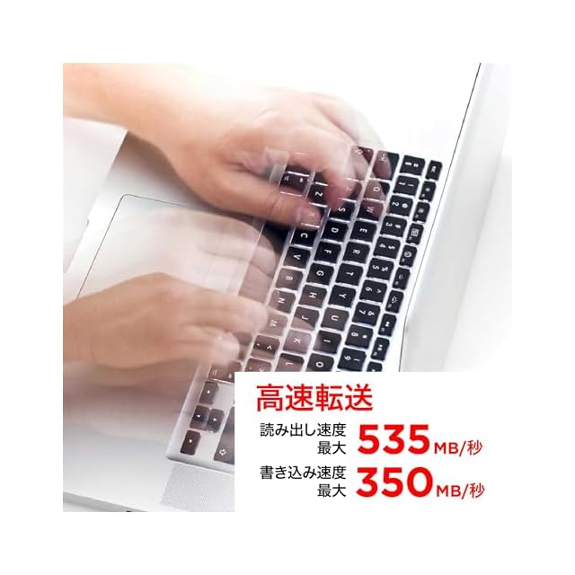 シーケンシャル最大読出し速度545MB/秒2 と書込み速度350MB/秒2で、通常のハードディスクよりも高いパフォーマンスを発揮します。