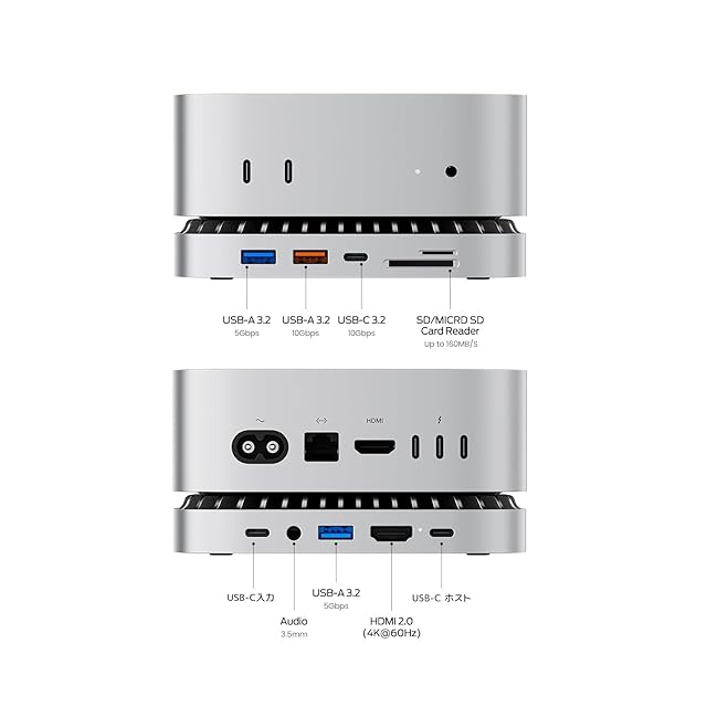 【洗練されたデザイン】RayCueのMac Mini拡張ハブは、Mac Miniと色調が調和するデザインを採用しています。製品の外観は、Mac Mini本体との一体感を大切にし、違和感なくスタイリッシュに配置できます。ただし、製造ロットによって若干色味に違いが生じる場合がありますので、あらかじめご了承ください。