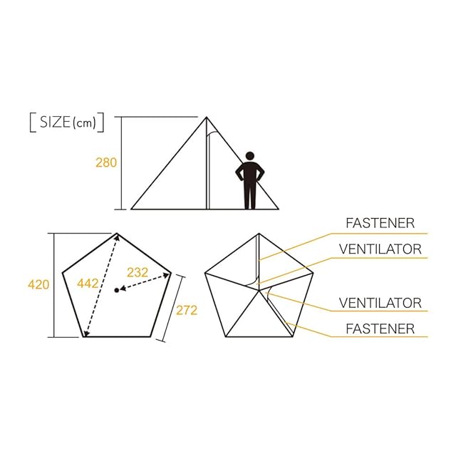 素材:[本体] コットン混紡生地( TC ) 撥水加工済み( ポリエステル65%コットン35% ) [裾部( スカート )] ポリエステル [ポール] スチール製5本継ぎ( φ32mm/280cm )×1本、スチール製4本継ぎ( φ22mm/200cm )×1本