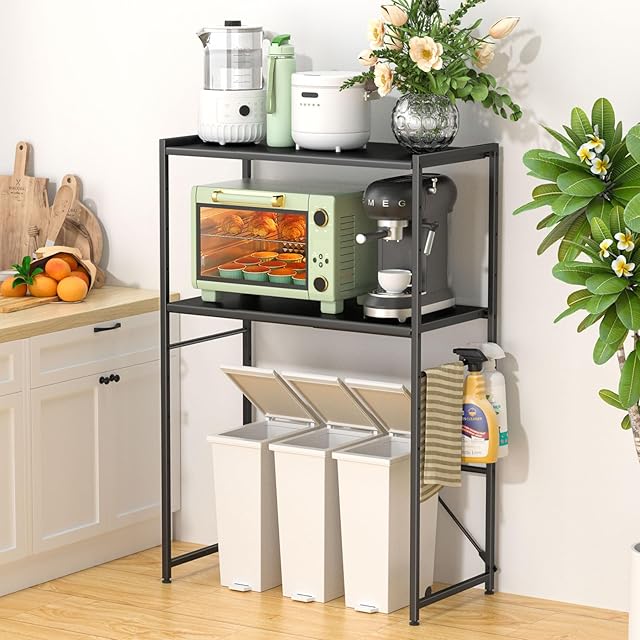 【横幅伸縮60~80cm】ゴミ箱上ラック 高さ125cm YDH レンジラック レンジ台 キッチンラック 冷蔵庫ラック 可動棚8段階調節 レンジボード 洗濯機 ラック オープンラック キッチン 収納ラック 棚 おしゃれ (ブラック)