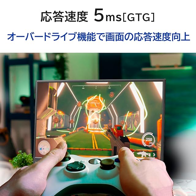 【オーバードライブ機能で応答速度5ms[GTG]を実現】オーバードライブ機能をONにすると、画面の応答速度を向上させることができます。動きの速いシーンの残像感を低減し、動きの激しい映像やゲームでもクッキリした映像をお楽しみいただけます。※オーバードライブレベル2設定時