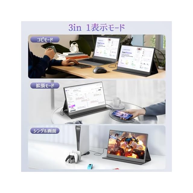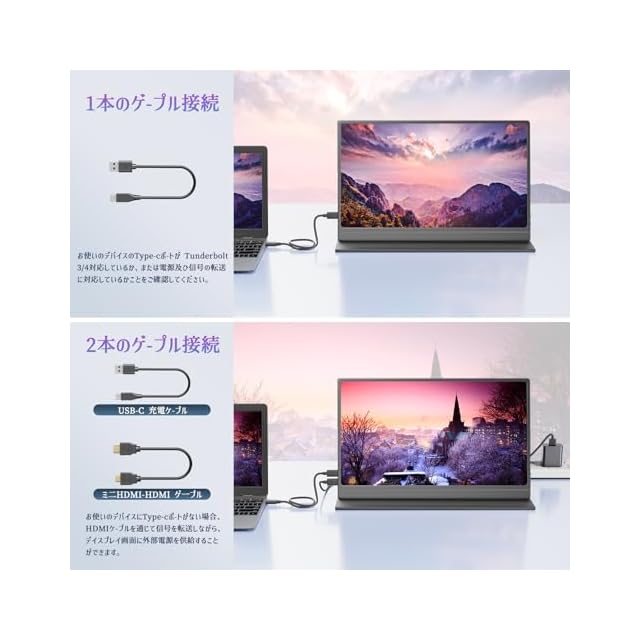 【ケーブル1本で映像出力と給電実現】デバイス側はフル機能のTYPE-C端子があれば、モバイルモニターに接続する時USB Type-Cケーブル1本で映像出力と電源供給が可能でございます、またType-Cケーブルを経由で接続対応のPC・スマホなどのデバイスに給電も行われます。接続がすごく簡単なので、いつでもどこでもYouTubeやゲーム・映像を楽しめて、ビジネスではweb会議やプレゼンテーションにも使えます。* 電圧を安定させ、コントラストや輝度、音量などを向上させるため、付属の電源アダプターを利用して電力供給してください。