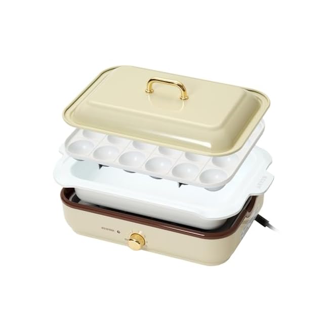 アイリスオーヤマ ホットプレート たこやき器 深鍋 2way 洗いやすい おしゃれ 温度調節機能付き 保証付き PHP-1002TC-VC バニラクリーム
