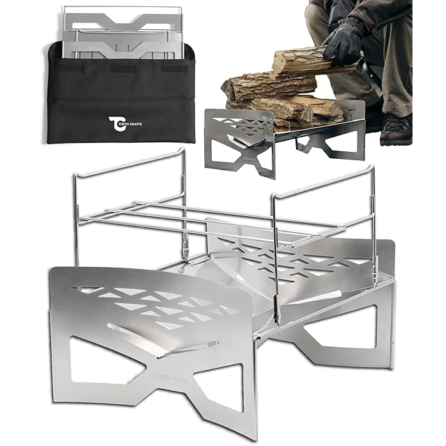 TOKYO CRAFTS マクライト2 焚き火台 【コンパクト/大型/軽量/薪割り不要/組み立て簡単/ゴトク付き】 ソロ ファミリー 焚火調理 火力調整不要/焚き火シートセットあり 耐熱 薪バッグ チクチクしない 片付け簡単 80cm大判 ブラック
