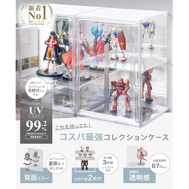 ✅【コレクション の本当の楽しみ方】 背面をミラー仕様にする事により、お気に入りの フィギュア や ガンプラ の魅力を最大限に引き出します。あるのとないのとでは雲泥の差。抜群の 透明 感と クリア さで ケース を感じさせません。マグネット付き前扉により、コレクション のメンテナンスや再配置、入れ替えが簡単に行えます。また、積み重ね (スタッキング)も可能。
