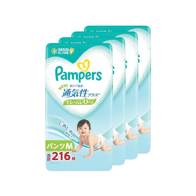 【パンツ Mサイズ】 パンパース オムツ 通気性プラス (5~12kg) 216枚(54枚×4パック) [ケース品]