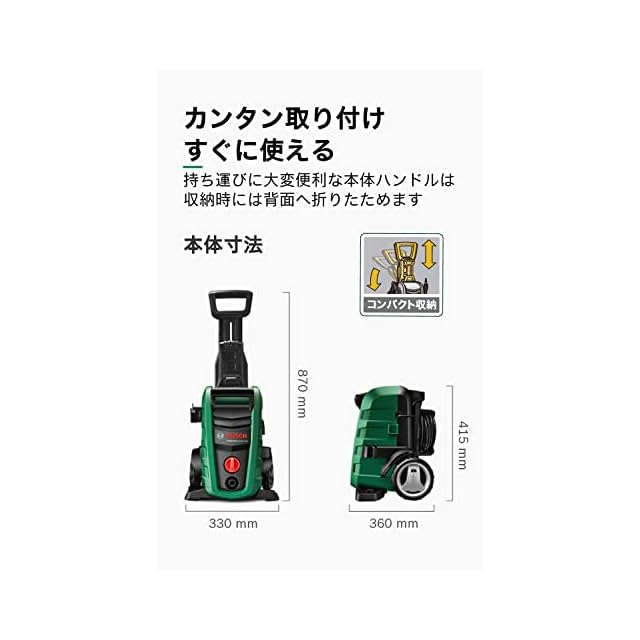 ボッシュ(BOSCH)高圧洗浄機特別セット (6m延長高圧ホース・ブラシ付き水しぶきカバー特別付属)1500W 最大許容圧力12MPa パワフル洗浄 コンパクト収納 [8m高圧・3m水道ホース・車輪付き] UA125J3
