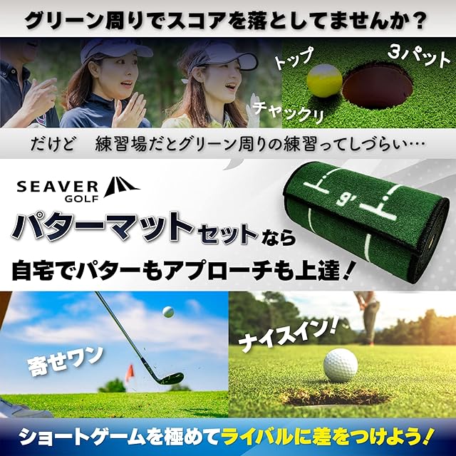 パターマット 9点セット 【アプローチも練習できる】パター練習マット ゴルフ パターカップ 自動返球 SEAVER GOLF
