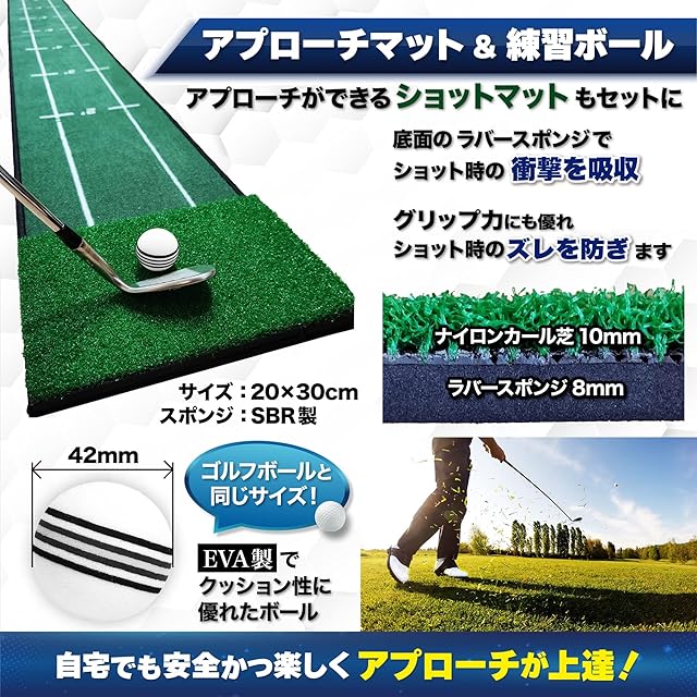 【自宅でショートゲーム上達のトータルセット】練習場では数をこなせないパターやアプローチを自宅で上達するための9点フルセット!好きなときに気軽に練習ができ、グリーン周りでスコアを落とすラウンドからおさらば!