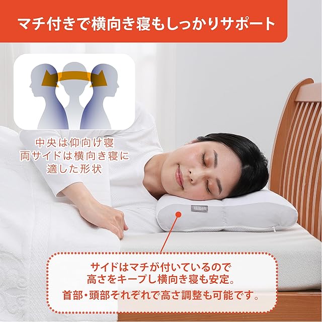 首・肩口にフィットするアーチ形状。首部と頭部がそれぞれ分割しているのでバランスよく支え、寝返りがしやすくなっています。