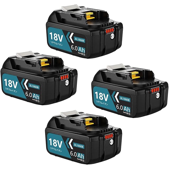 【商品仕様】マキタ 18v バッテリー BL1860B 電圧:18V 容量:6000mAh 個数:4個セット種類:リチウムオム電池 高品質採用 多機能付き:バッテリーは残量表示が付いています。確認ボタンを押したら、4段階の残量が見えます 。高品質セルを採用し、BMS制御基盤が内蔵し、耐久性が高く、仕事率が更にアップ!
