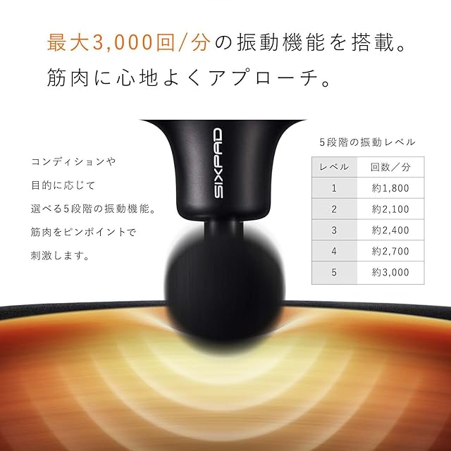 【お好みで選べる、5段階の振動レベル】最大3,000回/分の振動機能を搭載。