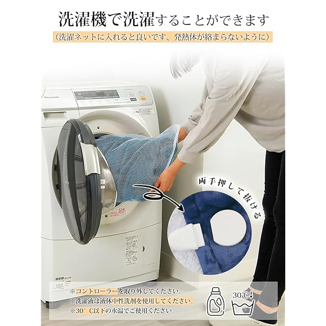 【丸洗い可&ダニ退治】JUUE電気掛け毛布は丸洗いできるふんわり生地で、コントローラーを取り外して洗濯機で丸洗い可能です。ふわとろけるような柔らかさ洗濯可能で汚れを洗い流して、いつでも清潔に心地よく使用できます。電気掛け毛布の最良の状態を保つために、風通しの良い日陰で自然乾燥させるおすすめします。ダニ退治機能付きて、スイッチを短押すと、ダニ退治モードに入ります。温度は6段階45°Cを設定で、そのまま1時間前後放置して、ダニを消滅できます。乾燥機は使用しないでください。※洗濯時には洗濯ネットに入れ、てください。)