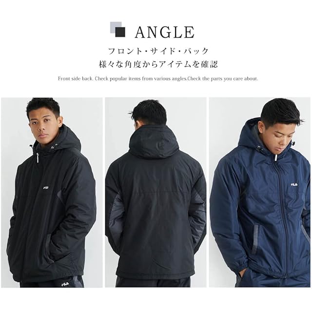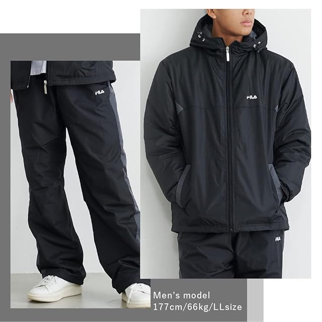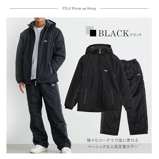 [フィラ] 上下セット 裏フリース ウォームアップスーツ 温かい ウィンドブレーカー スポーツウェア 長ズボン ランニング ジム 通学 ジャージ上下セット カジュアルスーツ メンズ ブラック L