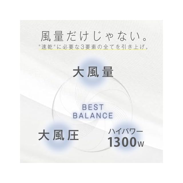 1大風量 2.3m3/分※3 大風圧 従来機種から109%にUP※43ハイパワー1300W 大風量でも暖かい風で快適ドライ