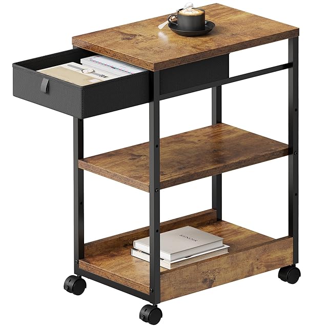 YeTom パソコンラック サイドワゴン 引き出し付き サイドテーブル pcラック キャスター付きワゴン pcワゴン 板は調節可能 プリンターラック 袖机 PC本体収納 袖机 幅300*奥行480*高さ680mm ゲームラック ビンテージ