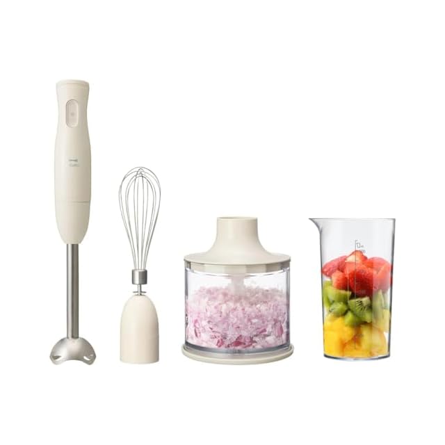 機能:ブレンダー(つぶす、混ぜる)、チョッパー(刻む、砕く)、ホイッパー(泡立てる)