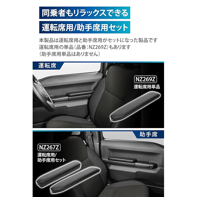 ●同乗者もリラックスできる運転席用/助手席用セット 本製品は運転席用と助手席用がセットになった製品です。同乗者もリラックスしてドライブを楽しむことが出来ます。 運転席用のみの製品(NZ269Z)もご用意しています。(助手席用のみの商品はありません)