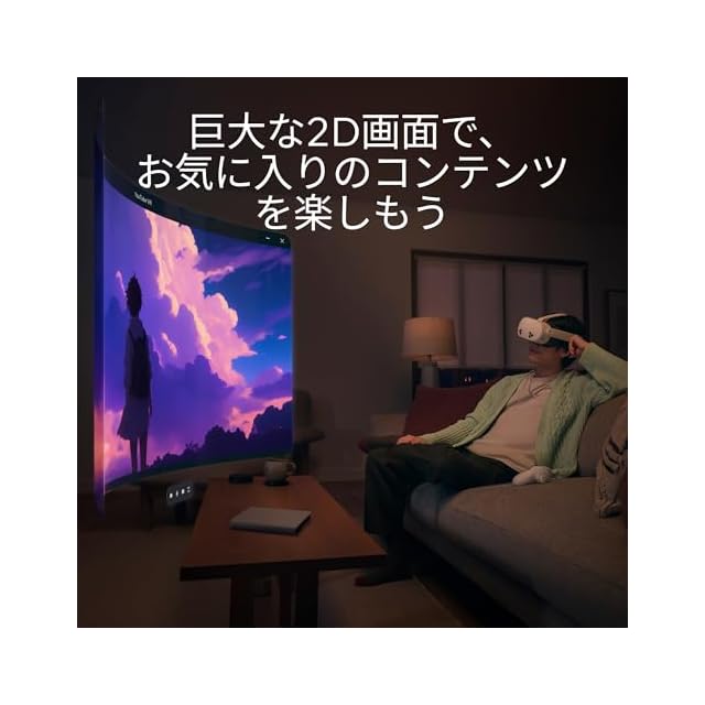 自分だけのシアターを、自分の好きな場所で Meta Quest 3Sがあれば、部屋が自分だけの映画館に早変わり。周りの空間が暗くなり、くっきり鮮やかな大画面で映画や番組を楽しめる。