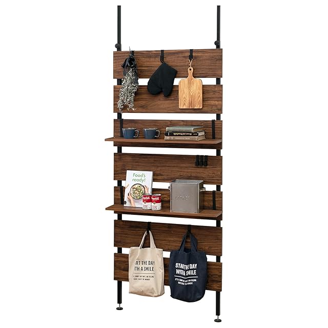 萩原(Hagihara) 突っ張り ラック つっぱり 棚 壁面収納 ウォールラック 【DIY・穴あけ・工事が不要】簡単取付 段差対応 木目調 幅80 スリム ブラウン KTR-3148BB
