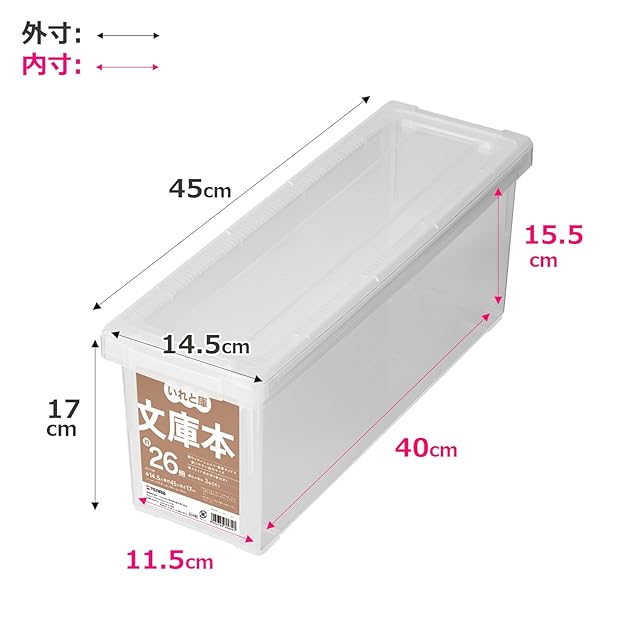 天馬 書籍収納ボックス 文庫本いれと庫 (ケース販売) 18個入 クリア 約17×14.5×45cm