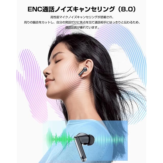 【高音質ドライバー&ダブルマイクENC通話】 13mmの大口径ドライバーユニットを搭載し、明瞭の高音域から、透明な中音域、豊かな低音域までフルカバーし、サウンド本来の質感を復元し、原音を忠実に再現できます。コンサート会場の中にいるかのように、音楽がゆっくりと耳に伝えてくるので、リアルな臨場感で音楽に浸ることができます。ちなみに、高性能マイクとノイズキャンセリングが搭載され、周りの騒音をカットし、自分の発話だけに焦点を当て通話相手にはっきりと伝わるため、通話品質が優れています。