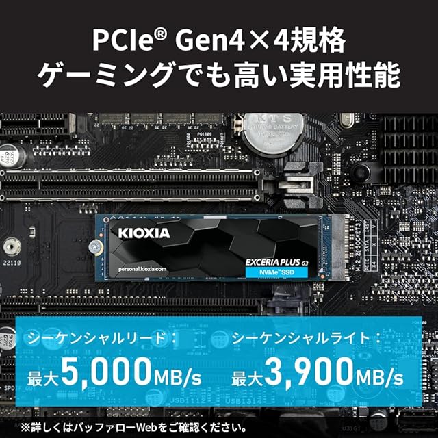 KIOXIA(キオクシア) EXCERIA PLUS G3 SSDシリーズは、PCI Express 4.0規格に準拠し、ゲーム、動画編集などの場面で違いを生み出します。 最大2TBの容量に対応し、当社のPCIe 4.0のメインストリームモデルとして、デスクトップPCにもノートPCにもおすすめです。また、M.2 2280片面実装を採用し、さまざまな機器に幅広く対応しています。