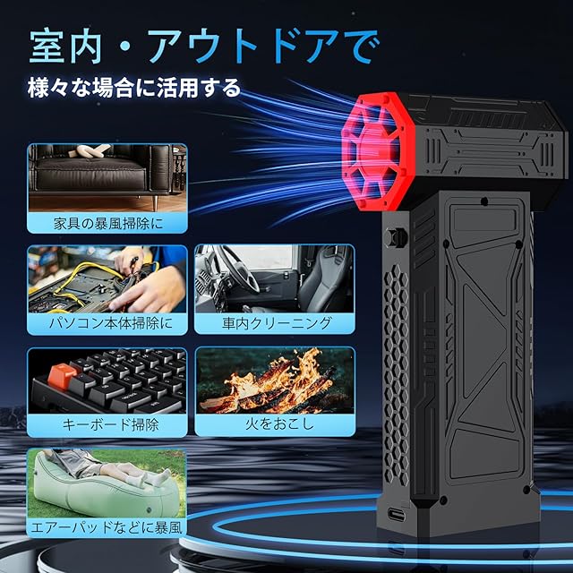 エアダスター 電動エアダスター 超強力 小型 ブロワー 200,000RPM高速回転 最大風速 100m/s 5段階風量調整 20,000mAh大容量バッテリー LCDディスプレイ搭 Type-C充電式 過熱保護 PC掃除/キーボード/家具/車内/エアコン/洗車用 収納ボックス付き 日本語取扱説明書付き (4.ブラック)