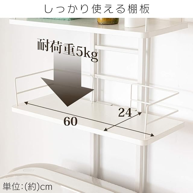 アイリスプラザ ランドリーラック 洗濯機ラック 突っ張り式 ランドリーラック 幅60cm 8段階 高さ調節 RDLK-2660WT ホワイト×ホワイト