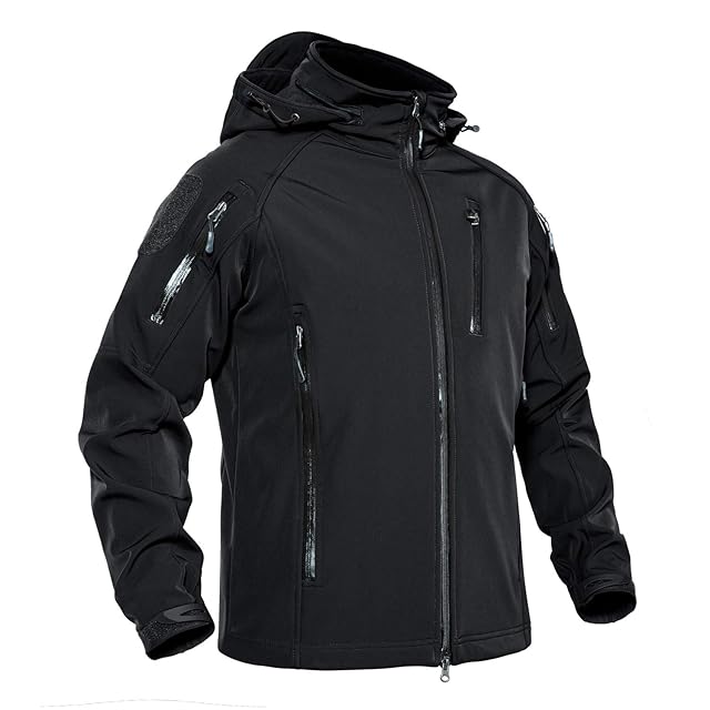 [KEFITEVD] ソフトシェルジャケット メンズ 冬 アウトドアジャケット 防撥水 バイクジャケット 登山 アウター 防風 作業着 防寒着 釣り キャンプ 上着 スキーウェア 黒 ブラック L