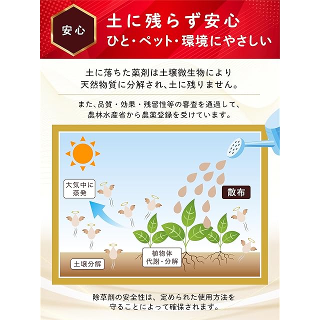 【環境にやさしい分解型】土壌に残留せず、自然の微生物によって分解される、土や周囲の植物に優しい成分設計。