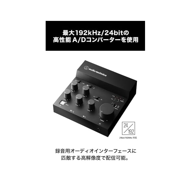 専用ドライバー不要、USB接続ですぐに使える:USBクラスコンプライアントに対応しており、専用ドライバーが不要でお持ちのPCやスマートフォン、PS4、PS5(当社にて動作検証済み)につなぐだけですぐに使用することができます。サンプリング周波数は最大192kHz/24bitの高性能A/Dコンバーターを採用し、スタジオクラスの高解像度で配信、レコーディングが可能。